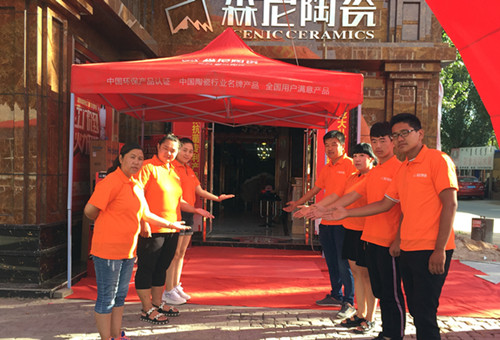 冬日暖陽(yáng),熱情森尼。2014年12月16日至17日,森尼2015年經(jīng)銷商年會(huì)在順德樂(lè)從財(cái)神酒店隆重舉行,順成企業(yè)執(zhí)行董事潘錦輝、森尼陶瓷銷售總經(jīng)理王庭龍、森尼陶瓷全國(guó)經(jīng)銷商、新聞媒體記者及森尼公司全體員工等共380多人參加了此次年會(huì)活動(dòng)。本次年會(huì)別出心裁地使用了“激情·夢(mèng)想”作為年會(huì)主題,并于16日正式拉開(kāi)帷幕。在森尼佛山營(yíng)銷中心彩旗飄揚(yáng),張燈結(jié)彩,一片生機(jī)勃勃、歡樂(lè)喜慶的新景象。森尼品牌全體員工精神飽滿,衣冠整潔,面帶微笑,懷著充滿激動(dòng)的心情,迎來(lái)了遠(yuǎn)方的客人。深情不變熱迎家人氣勢(shì)磅礴的拱門與彩旗,大紅高掛的豎幅,溫馨喜慶的展廳布置,精致可口的點(diǎn)心,激情的樂(lè)隊(duì)表演,豐富多彩的文化墻,為森尼品